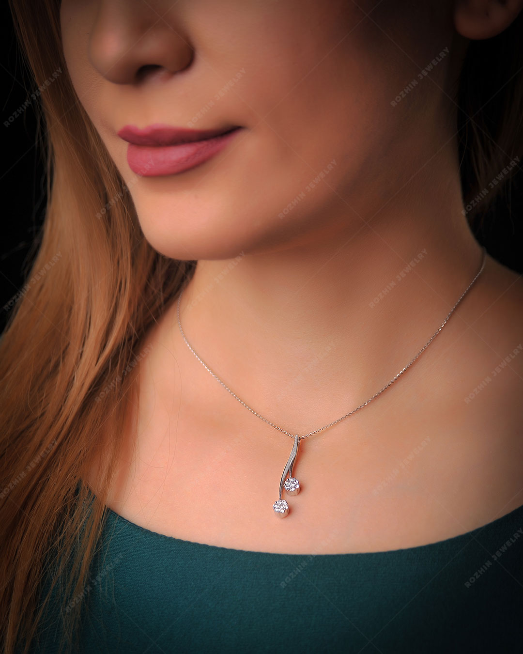 طراحی خاص این محصول و استفاده از دو فلاور از الماس تراش برلیان باعث متفاوت بودن این گردنبند با محصولات مشابه شده.