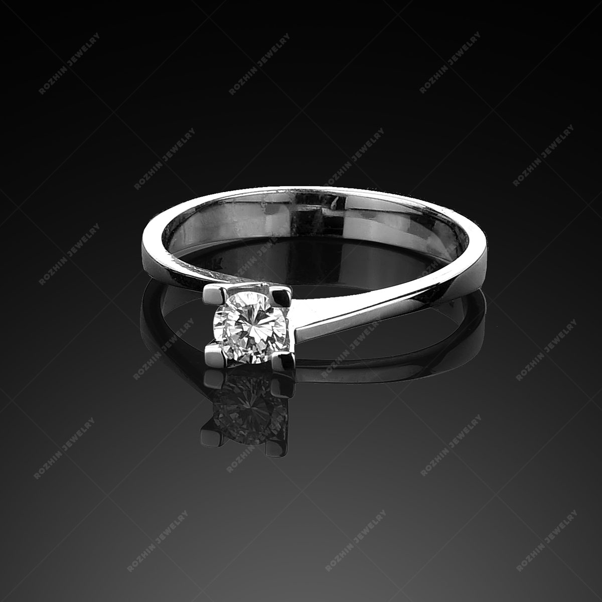 حلقه جواهر سولیتر ساخته شده از طلا سفید 18 عیار و یک قطعه الماس تراش برلیان 24 صوتی پاک و درجه یک