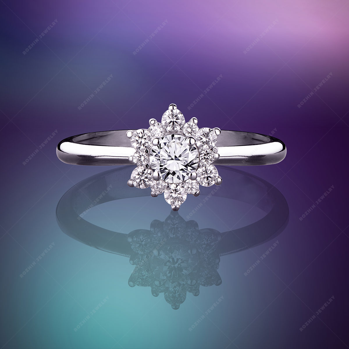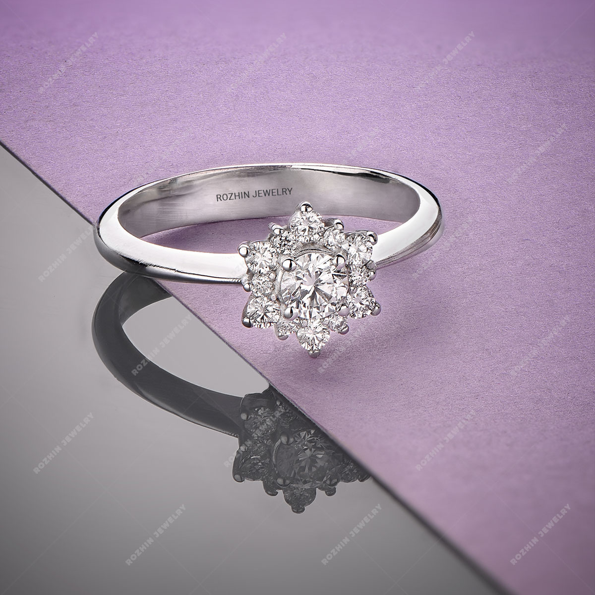 انگشتر لوکس مزین به برلیان های پاک و درجه یک و تخمه الماس ۲۴ سوتی