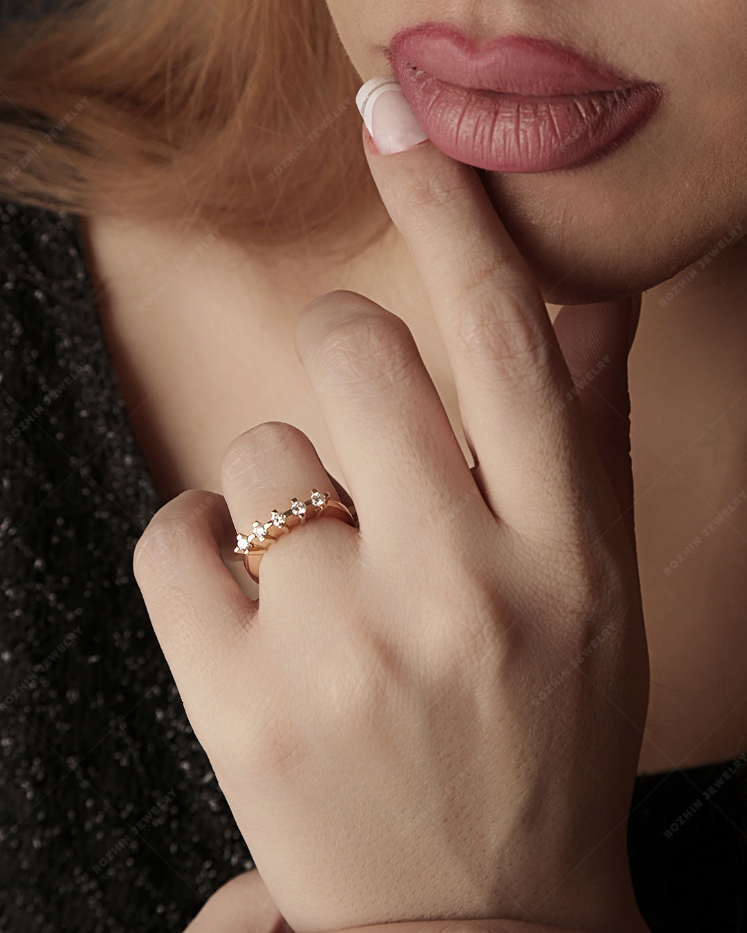 انگشتر رزگلد 5 تخمه مزین به برلیان های پاک و درجه یک
