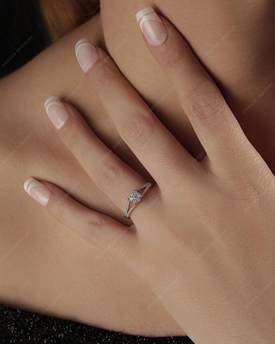 انگشتر رزگلد مزین شده با برلیان های پاک و درجه یک
