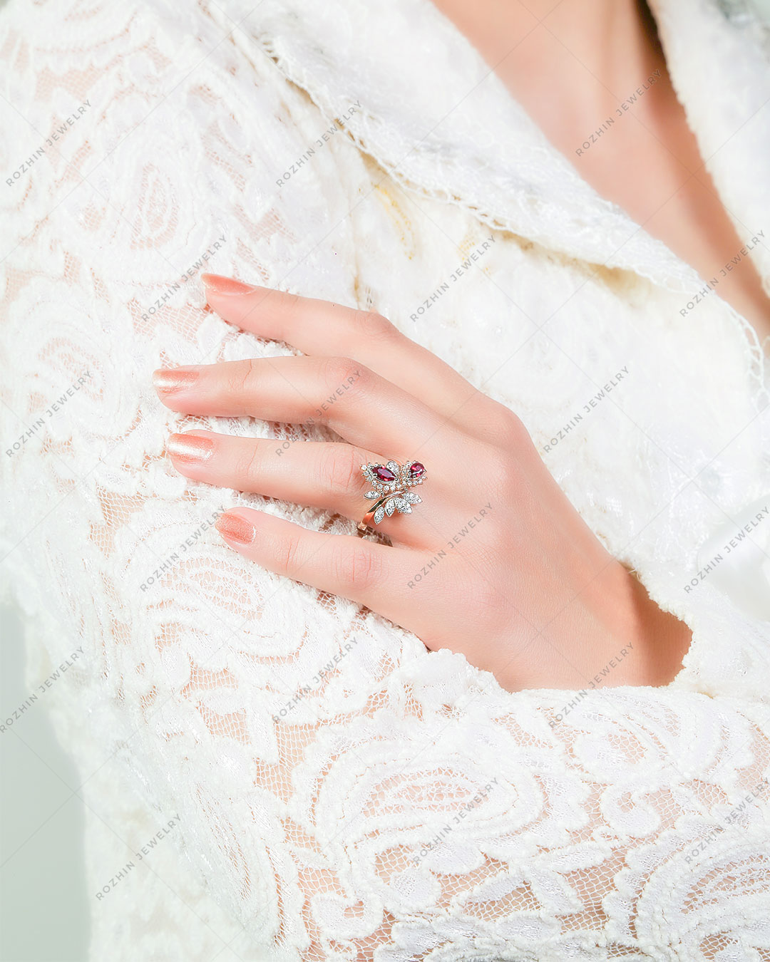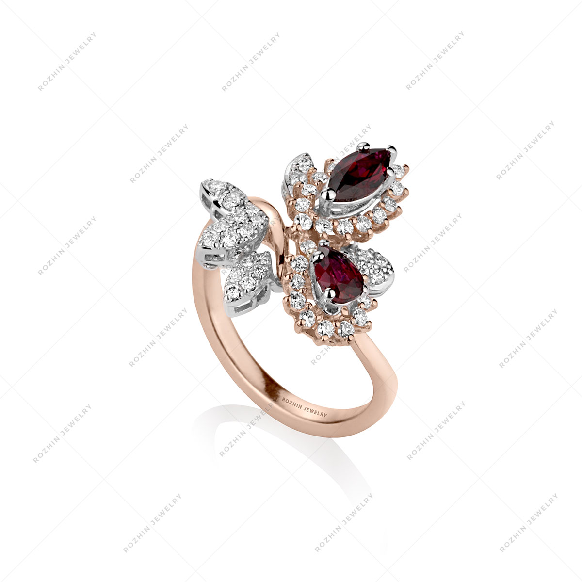 انگشتر دورنگ با برلیان پاک و درجه یک و یاقوت سنتاتیک