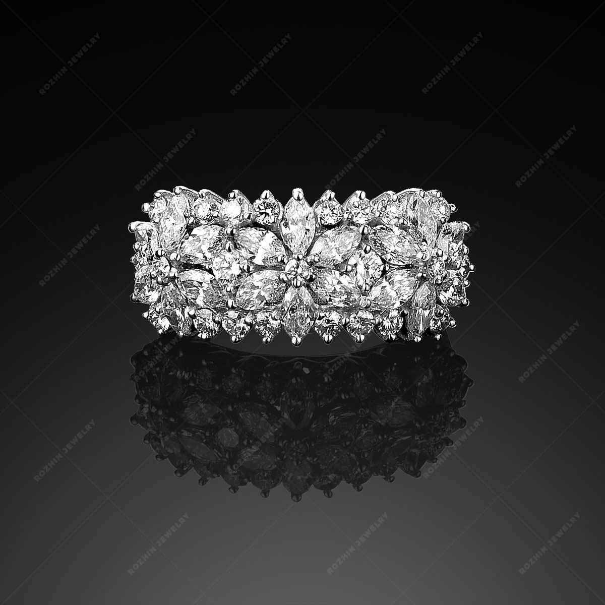 انگشتر لوکس مزین به الماسهای پاک و درجه یک با تراش برلیان و مارکیز