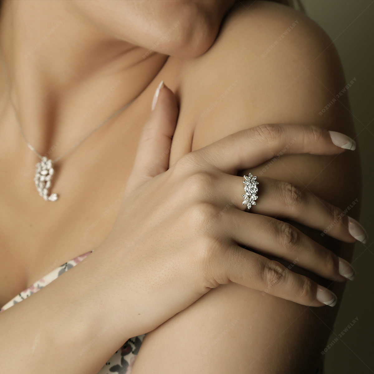 انگشتر لوکس مزین شده با الماس های با تراش برلیان و مارکیز درجه یک و پاک