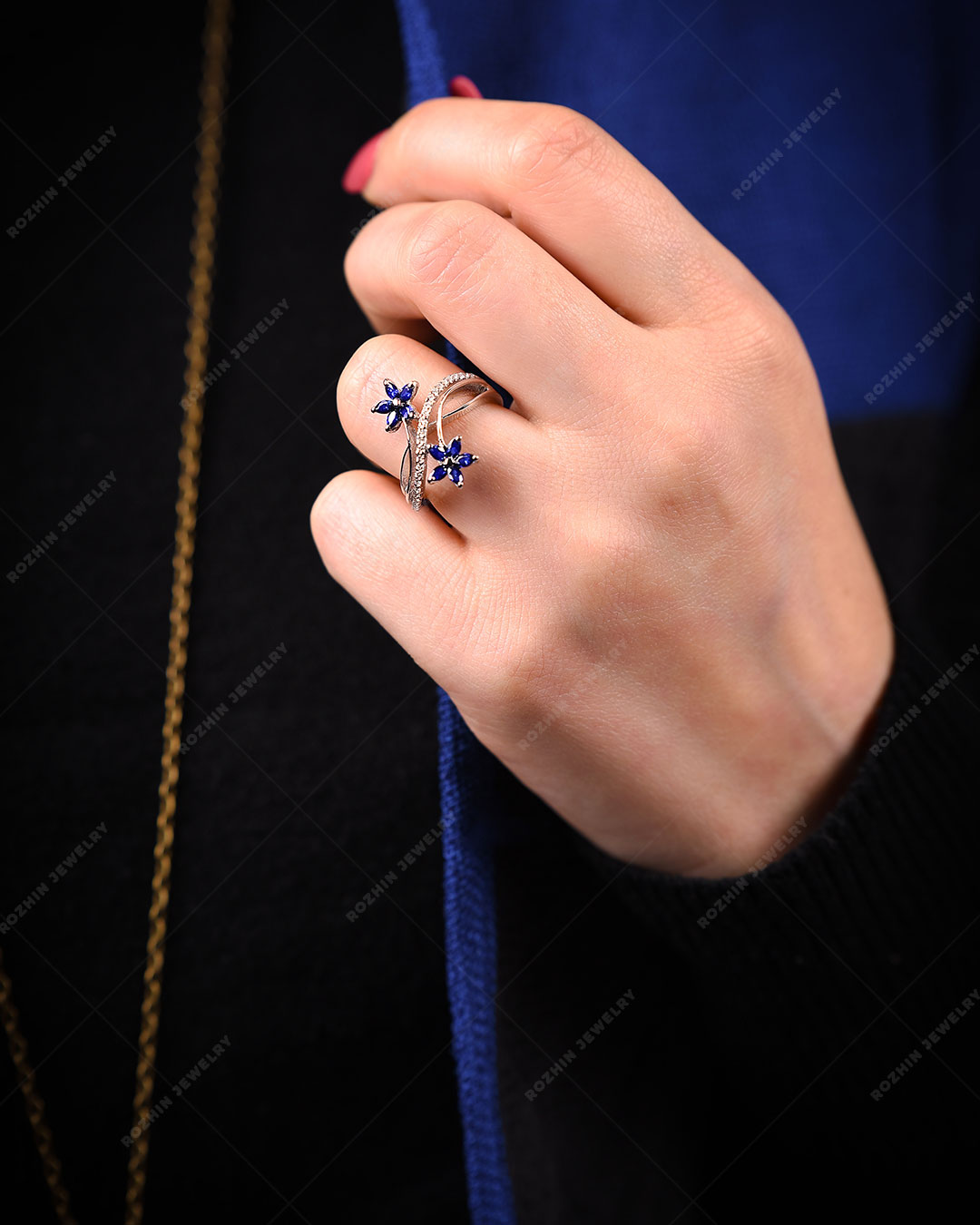 انگشتر دوگل مزین به برلیان پاک و یاقوت سنتاتیک