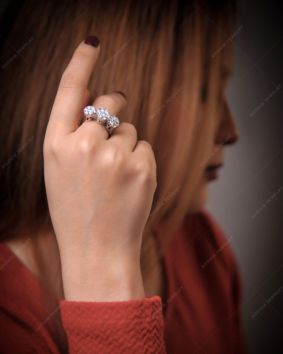 انگشتر 3 فلاور لوکس مزین به برلیان پاک و درجه یک