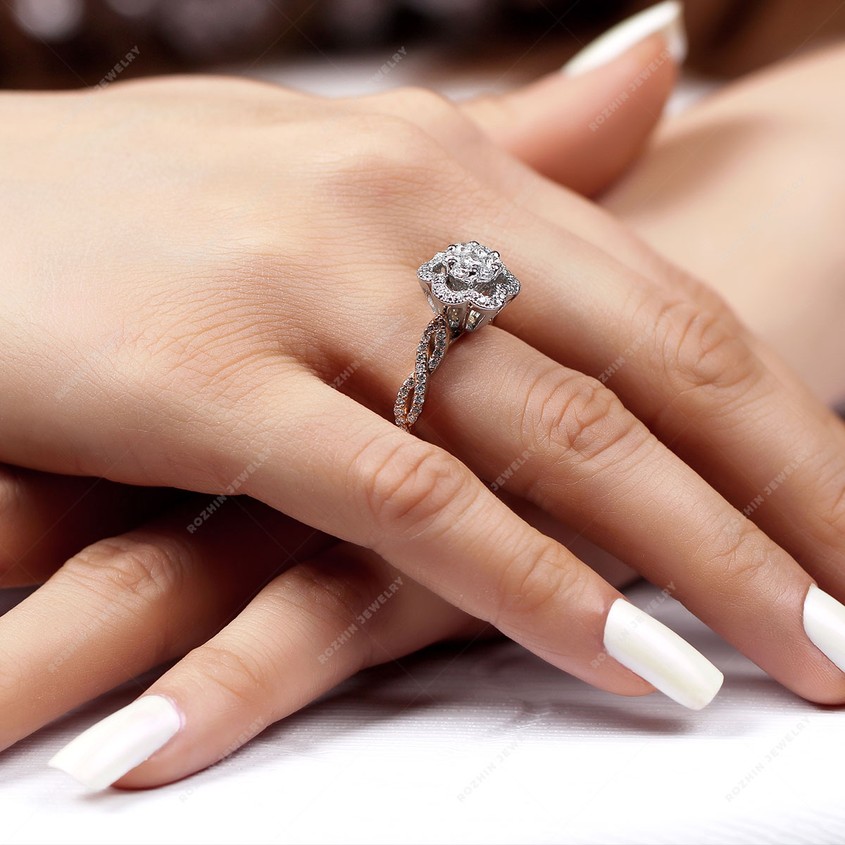 انگشتر فلاور دورنگ مزین به برلیان پاک و درجه یک