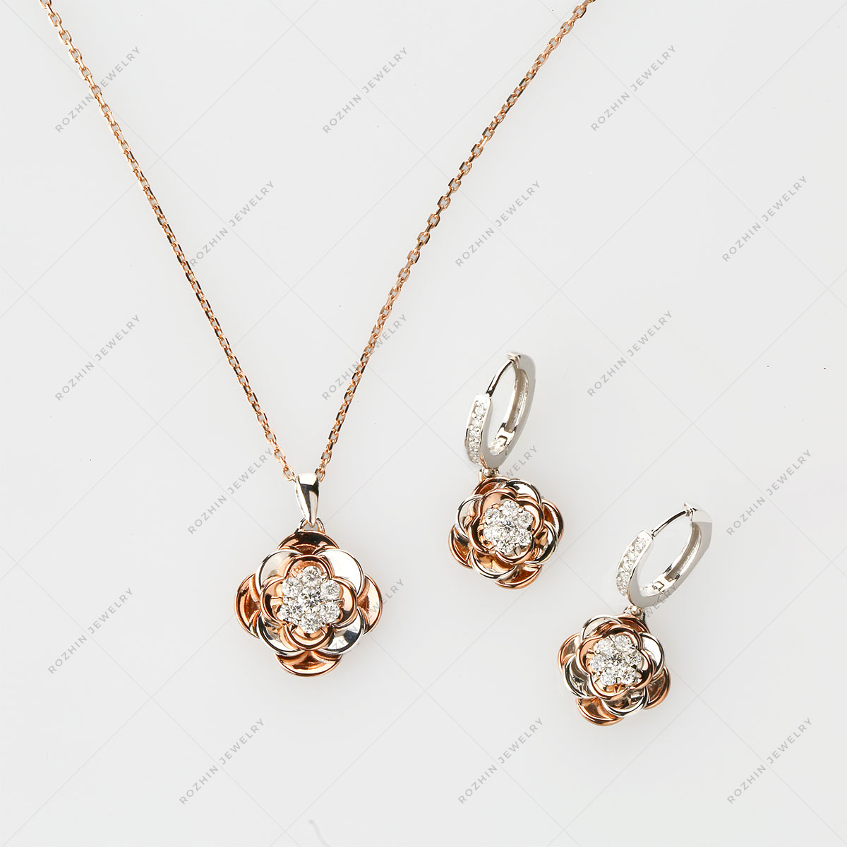 نیم ست رز گلد و سفید با برلیان پاک درجه یک